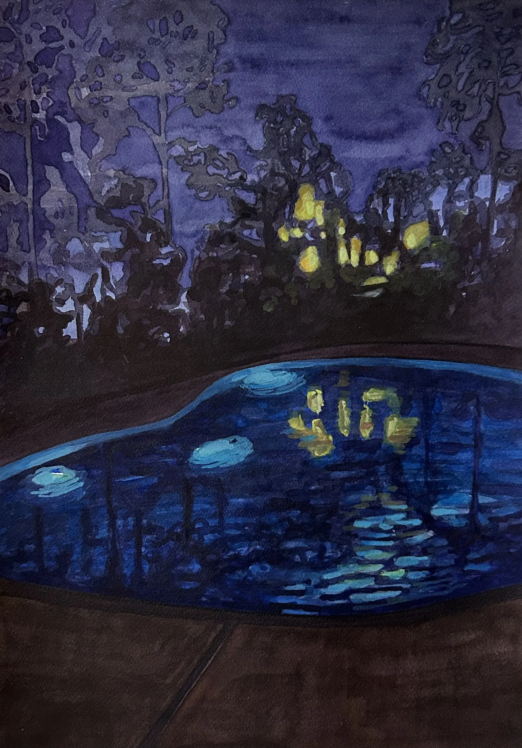Watercolor on wood panel 37 x 43,5 cm (2024)